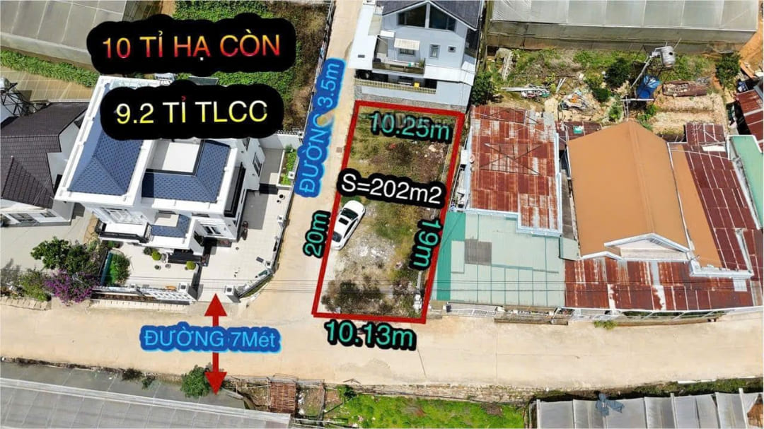 - Diện tích: 202m2 - 10m - 100% thổ cư,