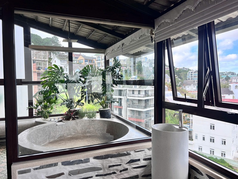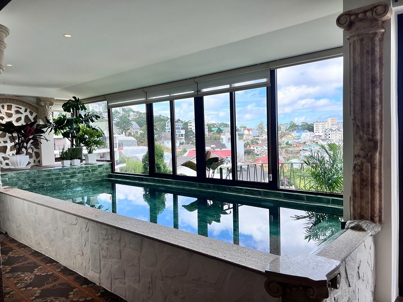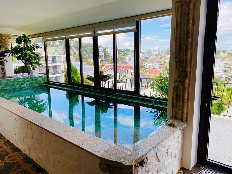 Thiết kế 2 hầm, 1 trệt, 1 lửng, 1 lầu và 1 áp mái, gồm 6 phòng ngủ, thang máy, hồ bơi, view toàn cảnh Đà Lạt phù hợp cho gia đình nhiều thế hệ hoặc khai thác lưu trú cao cấp.